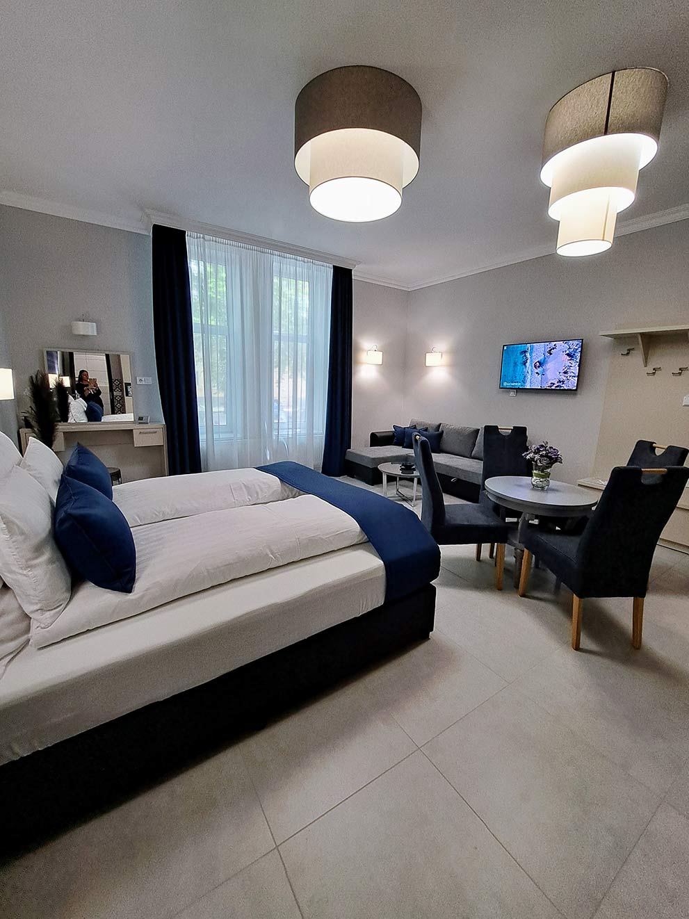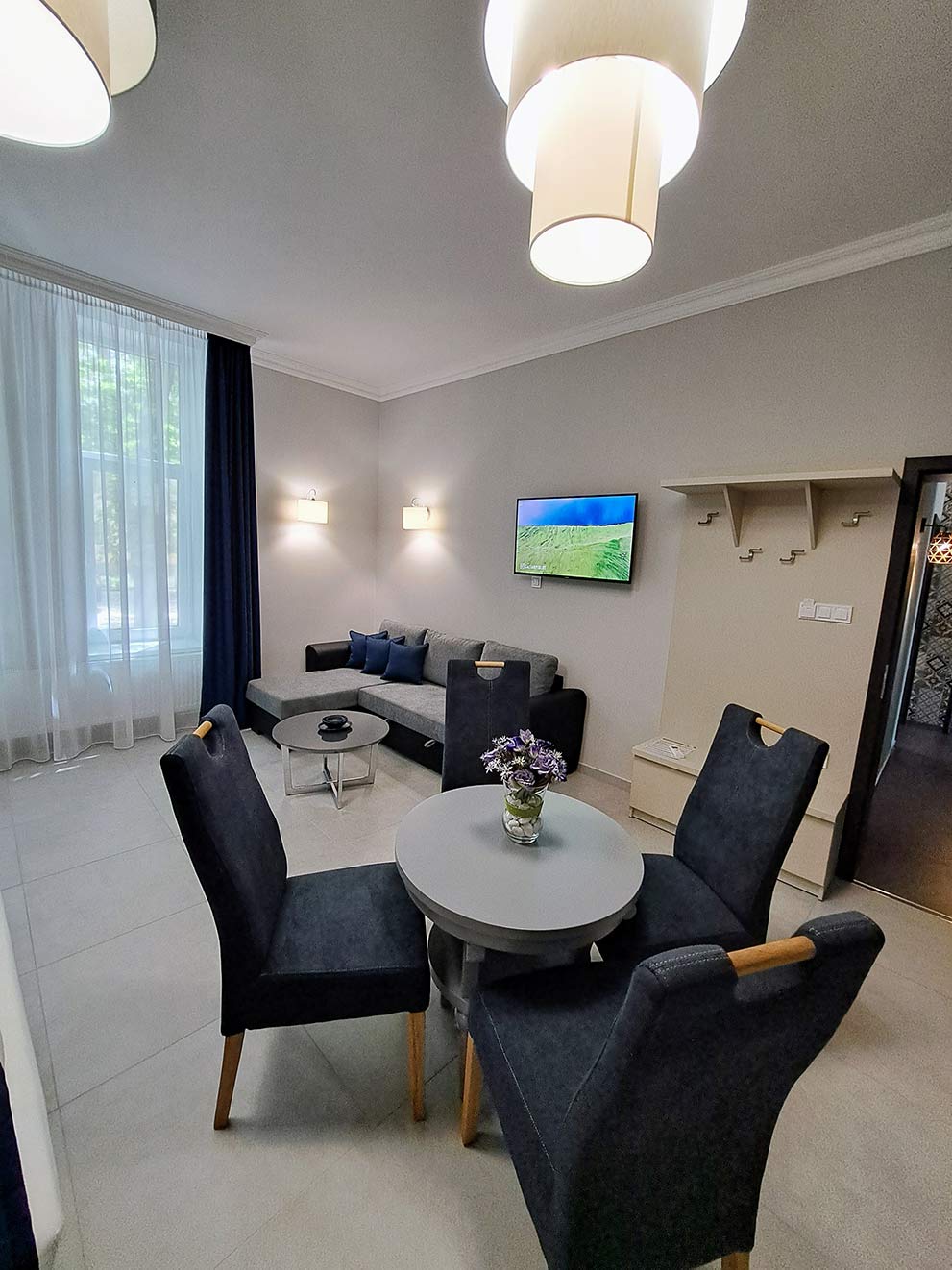 Prémium családi apartman Különálló lakosztály a luxus és kényelem kedvelőinek. Az összes apartman gépesített, konyhával, hűtővel felszerelt
